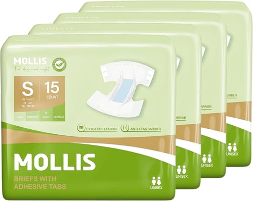 Buy MOLLIS Adult Diapers for Women and Men, Unisex Disposable Incontinence Briefs with Tabs, Odor Control, Small, 60 Count (4 Packs of 15) on ✓ FREE SHIPPING on qualified