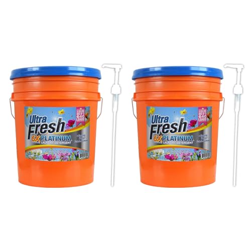 Buy Ultra Fresh 6X Platinum 5 Gallon Laundry Detergent Liquid with Spring Fresh Fabric Softener and Pump for All Machine Types, Up to 640 Loads (2 Pack) on ✓