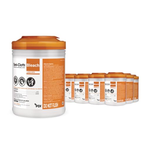 Sani-Cloth Bleach Disposable Wipes, Full Case, Hospital-Grade Surface Disinfecting Wipes for Healthcare and Bathroom, Large Wipe, 6" x 10.5", 75 Wipes per Canister, 12 Canisters Total, 900 Total Wipes