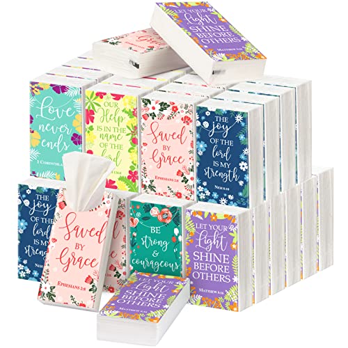 Outus 60 Pack Christian Pocket Tissues Travel Size 4 Ply Bible Verse Tissues Bulk 600 Sheets Inspirational Facial Individual Religious Gift for Christmas Church Wedding Travel(Flower Style) : Health