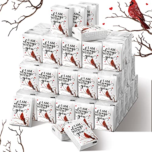Sinmoe 100 Pcs Funeral Facial Tissues Pack Bulk Memorial Pocket Tissues Travel Size 3 Ply Paper Cardinal Funeral Favors for Celebration of Life Guest Relatives Family Friends Memorial Service
