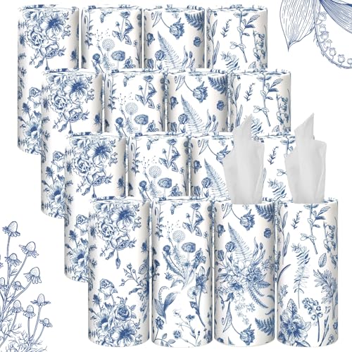 Buy Zonon 16 Pcs Vintage Floral Round Tissues Box Car Holder with Facial Tissue Bulk Blue Flower Travel Tubes for Car with 50 Sheets Cylinder Face Towel Fit for