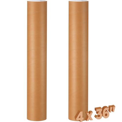 Buy Dunzoom 2 Pack 4 x 36 Inch Mailing Tubes 0.12" Thick Kraft Paper Poster Tube with Plastic Caps for Mailing Storing Rolled Goods Storage of Art Craft Document: