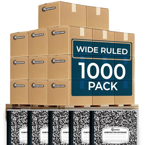 Rosmonde 1000 Pack (Pallet) Composition Notebooks Bulk, College Ruled, Pallet of Notebooks, 100 Sheets (200 Pages), 9-3/4 x 7-1/2, Bulk Notebooks for School, College & Office, 4-7 Days Transit