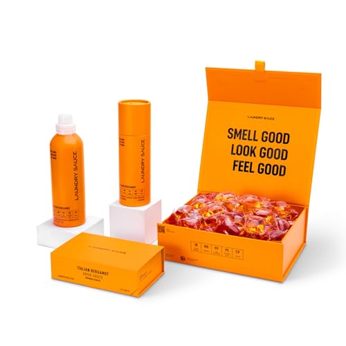 Laundry Sauce – Signature Bundle Italian Bergamot, Scented Laundry Detergent Pods & Scent Booster, Fabric Softener, Dryer Sheets, Fabric Protection, Essential Oils, Long Lasting Luxury Fragrance
