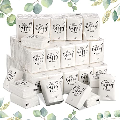 Spiareal 100 Pack Happy Tears Tissues for Wedding Bulk 3 Ply for Your Happy Tears Wedding Tissues for Guests Pocket Paper 3000 Sheet Mini Travel Size for Bridal Shower Party Favor (Classic)