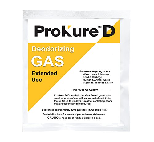 - ProKure D Extended Use pouches release a safe, low level of odor-eliminating gas, that upon consistent contact with ambient humidity, destroys the source of the odor