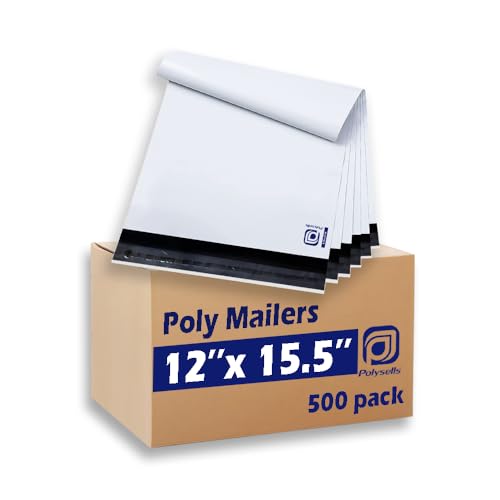 POLYSELLS Poly Mailers Shipping Envelopes, Strong Adhesive Sealing, Waterproof, and Tear-resistant Postal Mailing Bags for Clothing, Books, and Accessories (White, 12×15.5 Inch, 500 pcs)